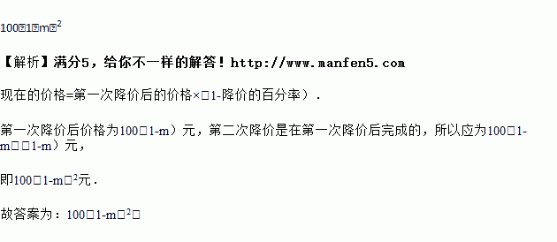 某商品的原价为120元,如果经过两次降价,且每次降价的百分率都是m,那么该商品现在的价格是_____元(结果用含m的代数式表示).