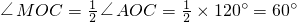 ∴∠MON=∠MOC-∠NOC=60°-15°=45°;
