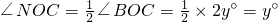 ∴∠AOC=∠AOB-∠BOC=90°-2y°,