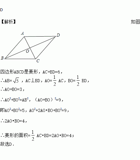 已知菱形的周长为4,两条对角线的和为6,则菱形的面积为( )