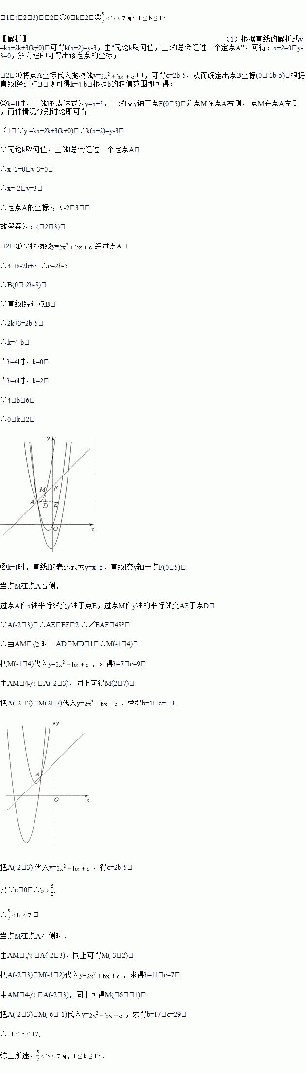 已知直线l:y =kx+2k+3(k≠0),小明在画图时发现,无论k取何值,直线l总会经过一个定点A.