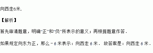 如果规定向东走为正,那么“﹣6米”表示:____.