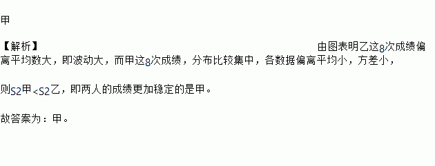 甲乙两人8次射击的成绩如图所示(单位:环).根据图中的信息判断,这8次射击中成绩比较稳定的是_____(填“甲”或“乙”).