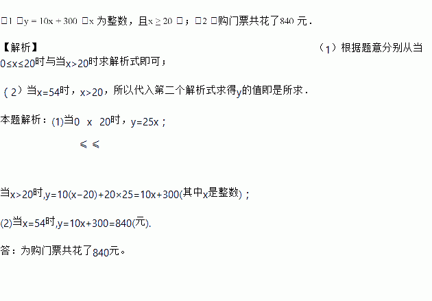 “十一”黄金周期间,欢欢一家随旅游团到某风景区旅游,集体门票的收费标准是:人以内(含![]()