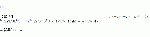 若ab=1,则(an-bn)2-(an+bn)2=________.