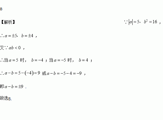 已知|a|=5,b2=16,且ab<0,那么a-b的值为( )