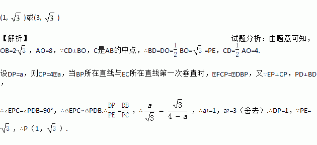 ),C是AB的中点,过点C作y轴的垂线,垂足为D,动点P从点D出发,沿DC向点C匀速运动,过点P作x轴的垂线,垂足为E,连接BP、EC.当BP所在直线与EC所在直线垂直时,点P的坐标为____