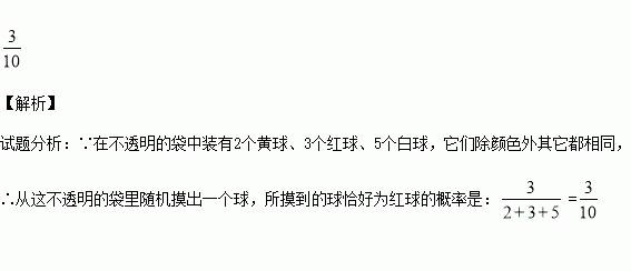 不透明的布袋里有2个黄球、3个红球、5个白球,它们除颜色外其它都相同,那么从布袋中任意摸出一球恰好为红球的概率是 .