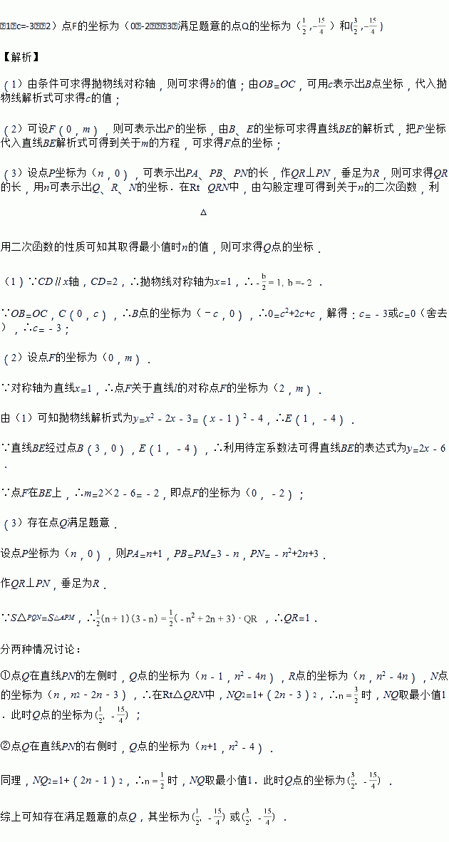 (3)如图②,动点P在线段OB上,过点P 作x 轴的垂线分别与BC交于点M,与抛物线交于点N.试问:抛物线上是否存在点Q,使得△PQN与△APM的面积相等,且线段NQ的长度最小?如果存在,求出点Q的坐标;如果不存在,说明理由.