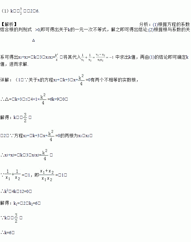 (2)若方程两根为x1,x2,那么是否存在实数k,使得等式