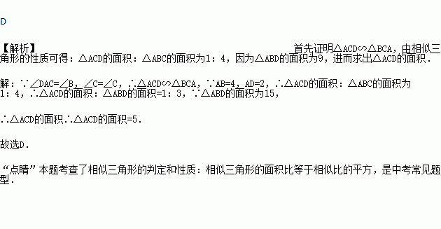 如图,D是△ABC的边BC上一点,AB=4,AD=2,∠DAC=∠B.如果△ABD的面积为15,那么△ACD的面积为( )