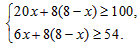 某地地震灾区进行募捐,共收到粮食100吨,副食品54吨,现计划租用甲、乙两种货车共8辆将这批货物全部运往灾区,已知一辆甲种货车同时可装粮食20吨、副食品6吨,一辆乙种货车同时可装粮食8吨、副食品8吨。