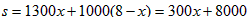 因为S随着x增大而增大,所以当x=3时,总运费s最少,为8900元。