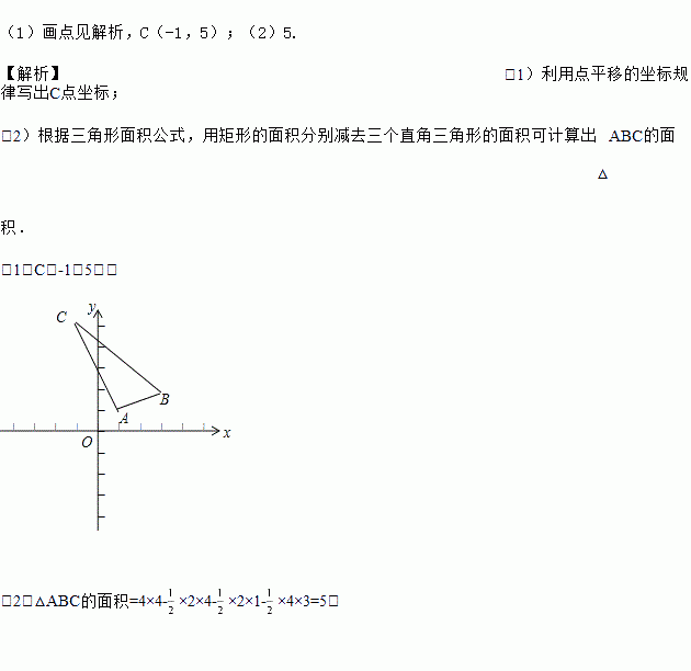 (1)在直角坐标系中画出A、B、C的位置,并写出点C坐标;