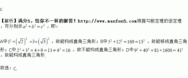 A. 1、 、 B. 5、12、13 C. 2、3、4 D. 9、40、41