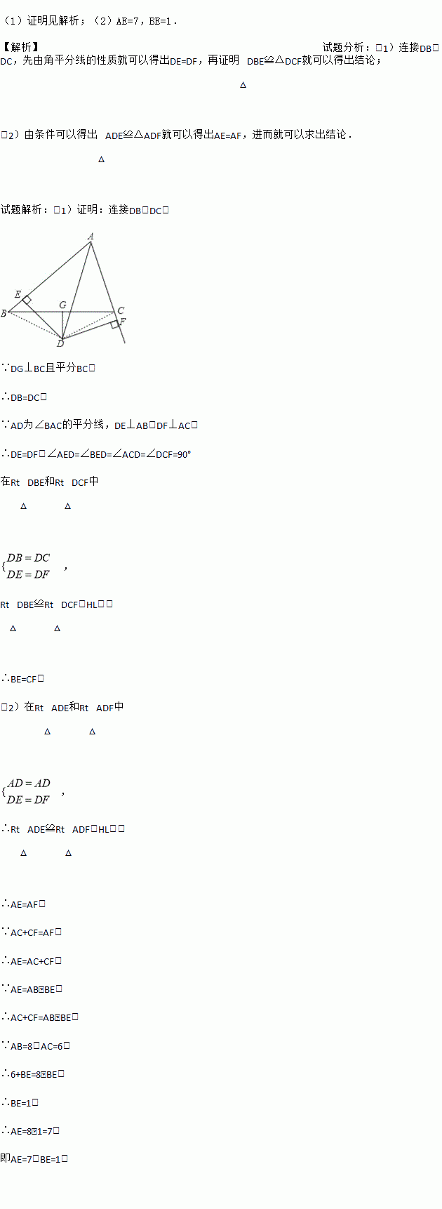 如图,△ABC中,AD平分∠BAC,DG⊥BC且平分BC,DE⊥AB于E,DF⊥AC于F.