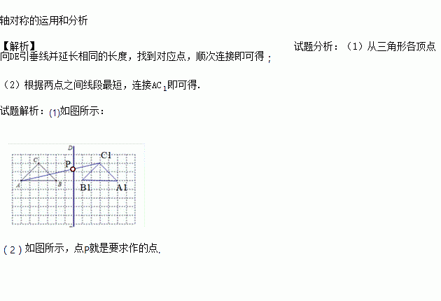 (1)画出格点△ABC(顶点均在格点上)关于直线DE对称的△A1B1C1;