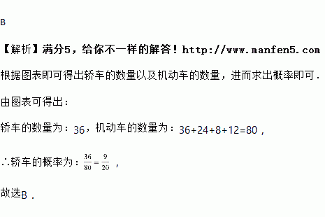 若有一辆机动车将经过这个收费站,利用上面的统计估计它是轿车的概率为( )