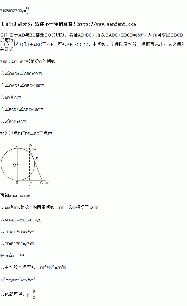 如图,⊙O的直径AB=12cm,AM和BN是它的两条切线,DE与⊙O相切于点E,并与AM,BN分别相交于D,C两点.