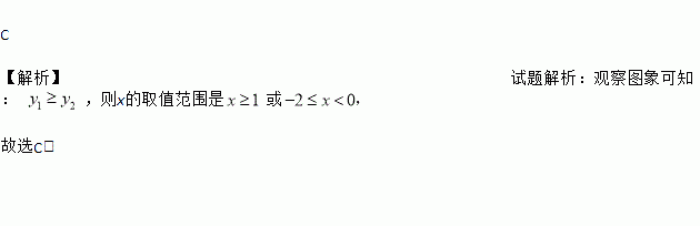 A. x≥1 B. x≤﹣2 C. ﹣2≤x<0或x≥1 D. x≤﹣2或0<x≤1