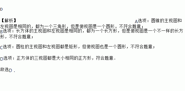 主视图、左视图和俯视图完全相同的几何体是( )