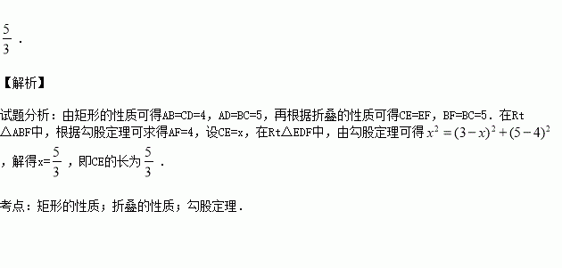 如图,在矩形ABCD中,AB=3,BC=5,在CD上任取一点E,连接BE,将△BCE沿BE折叠,使点E恰好落在AD边上的点F处,则CE的长为 .