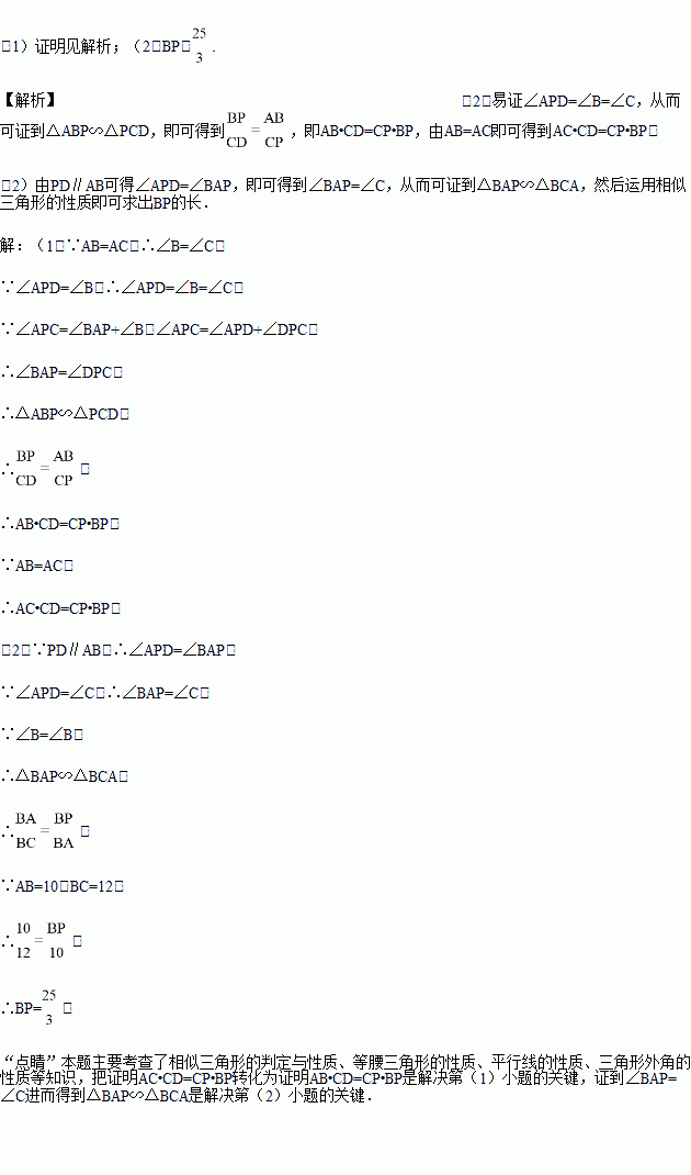 如图,在△ABC中,AB=AC,点P、D分别是BC、AC边上的点,且∠APD=∠B.