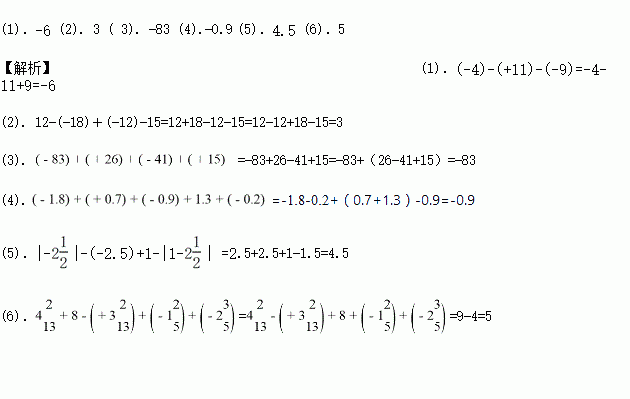 (1).(-4)-(+11)-(-9) (2). 12-(-18)+(-12)-15