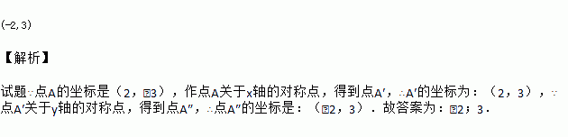 在平面直角坐标系中,点A的坐标是(2,- 3),作点A关于x轴的对称点,得到点A',再作点A'关于y轴的对称点,得到点A″,则点A″的坐标是____.