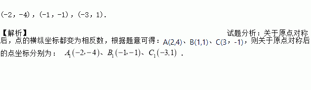 如图,在平面直角坐标系中,△ABC与△A1B1C1关于原点对称,则点A1、B1、C1的坐标分别为____