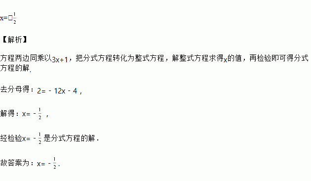 如图,是一次函数y=kx+b与反比例函数y=的图像,则关于x的方程kx+b=的解为( )