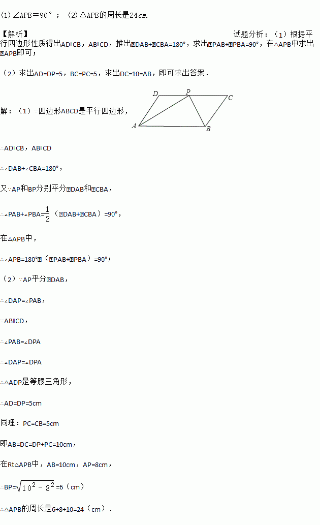 (2)如果AD=5 cm,AP=8 cm,求△APB的周长.