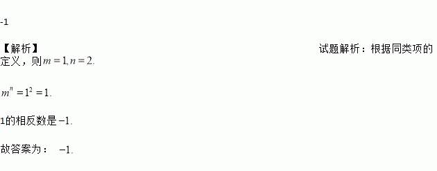 -1 【解析】试题解析:根据同类项的定义,则 1的相反数是 故答案为: