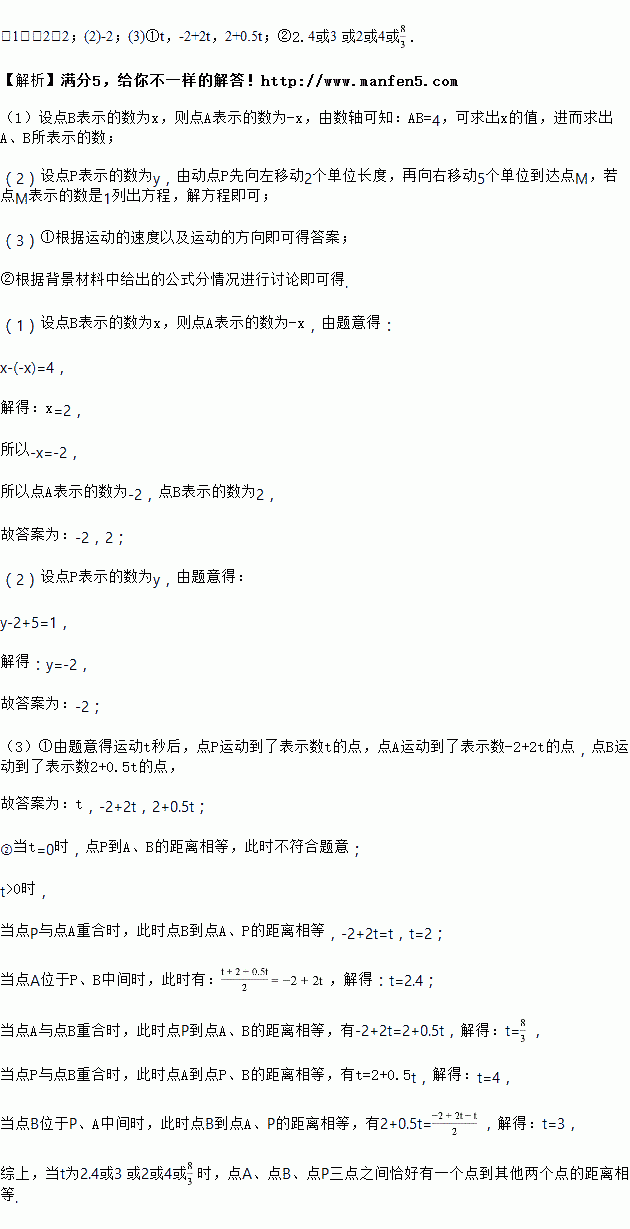 (3)(背景知识)数轴上,点A、B表示的数分别记为a、b,当点P在A、B之间,且到A、B的距离相等,即PA=PB,则点P表示的数可记为