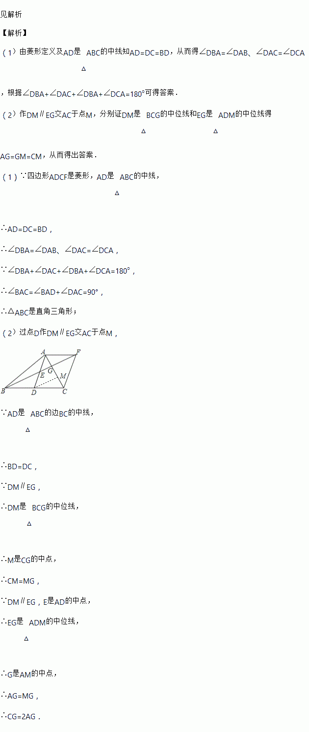 (1)若四边形ADCF是菱形,试证明△ABC是直角三角形;