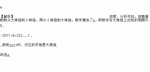 某小朋友用手指按如图所示的规则练习数数,数到2017时对应的手指是( )(各手指对应依次为大拇指、食指、中指、无名指、小拇指)