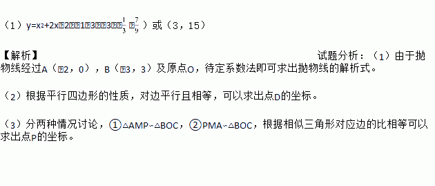 如图,已知抛物线经过A(﹣2,0),B(﹣3,3)及原点O,顶点为C.