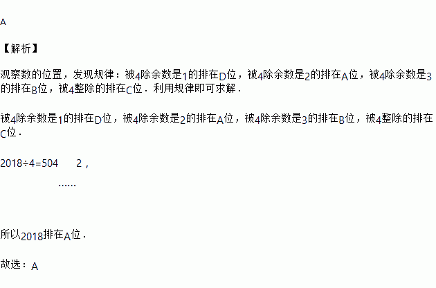 将正整数按如图所示的位置顺序排列,根据排列规律,则2018应在( )