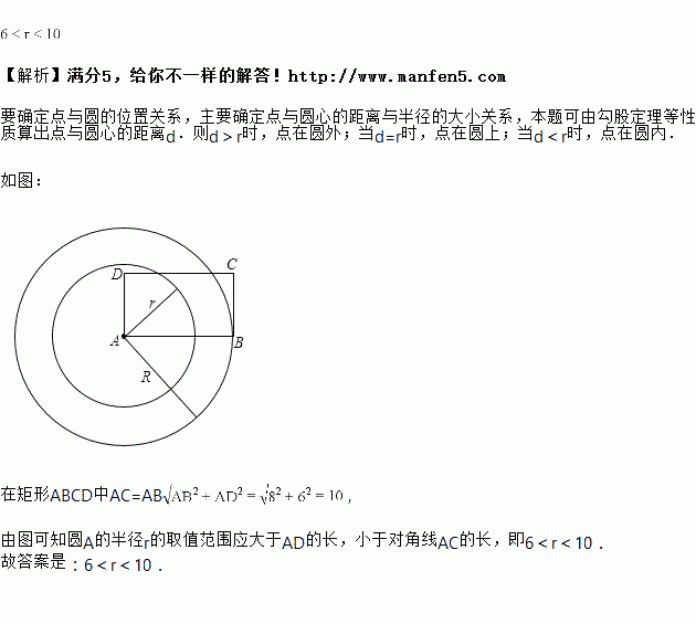 已知矩形中,,,以为圆心作,使,,三点中,至少有一个点在圆内,且至少有一个点在圆外,则的半径的取值范围是________.