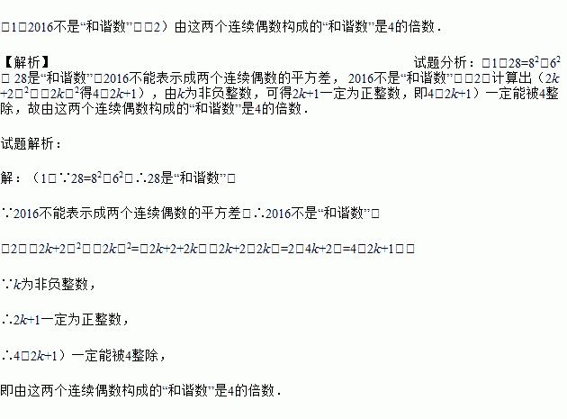 (1)28和2016这两个数是“和谐数”吗?为什么?