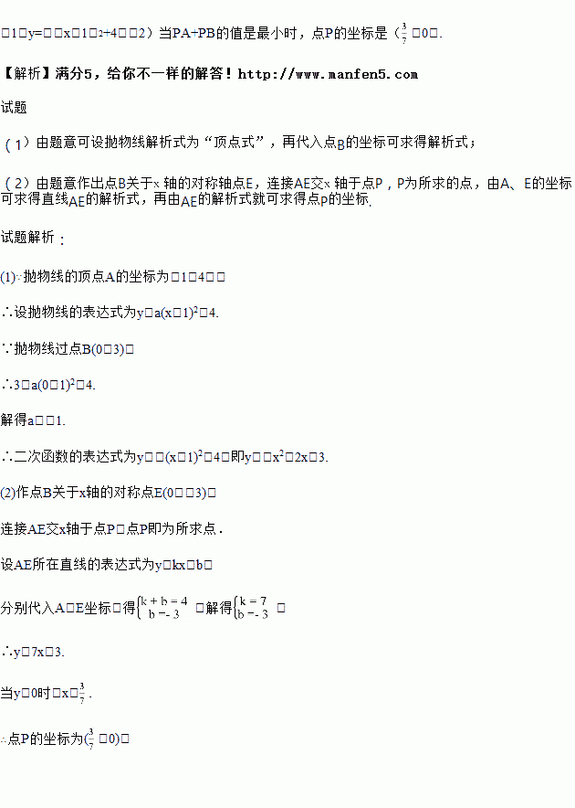 如图:已知抛物线的顶点为A(1,4),抛物线与y轴交于点B(0,3)与x轴交于C、D两点,点P是x轴上的一个动点.