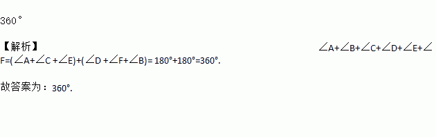 已知:如图,∠A+∠B+∠C+∠D+∠E+∠F=______.
