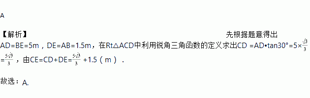 如图,小颖利用有一个锐角是30°的三角板测量一棵树的高度,已知她与树之间的水平距离BE为5m,AB为1.5m(即小颖的眼睛距地面的距离),那么这棵树高是( )