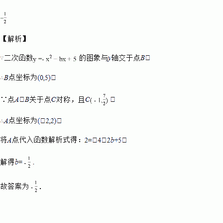 如图,在平面直角坐标系中,二次函数y=﹣x2+bx+5的图象与y轴交于点B,以点C为圆心的半圆与抛物线y=﹣x2+bx+5相交于点A、B.若点C的坐标为(﹣1,),则b的值为_____.