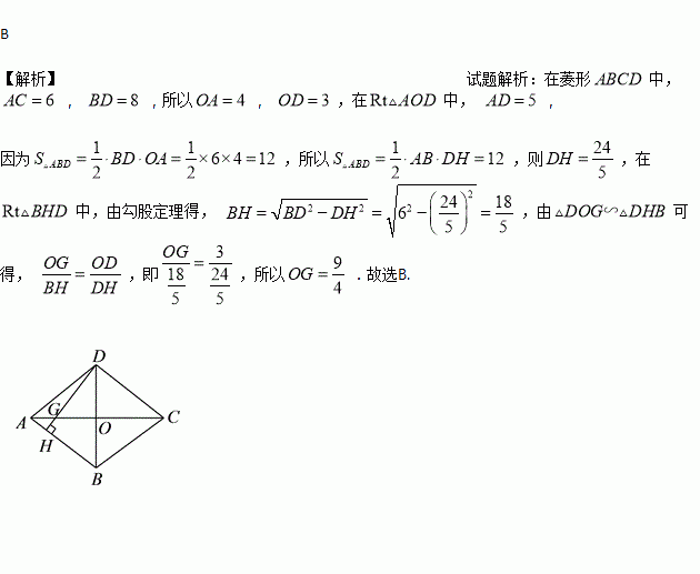 如图,四边形是菱形,对角线, 交于点 , , , 于点,且 与交于,则长度为( ).