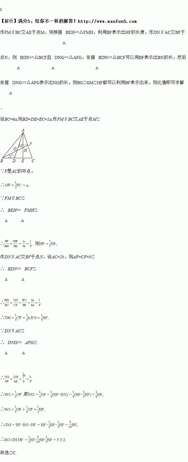 如图,在△ABC中,E,D是BC边的三等分点,F是AC的中点,BF分别交AD,AE于点G,H,则BG∶GH∶HF等于( )