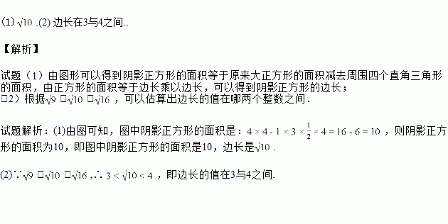 (2)估计阴影部分(正方形)的边长在哪两个整数之间?