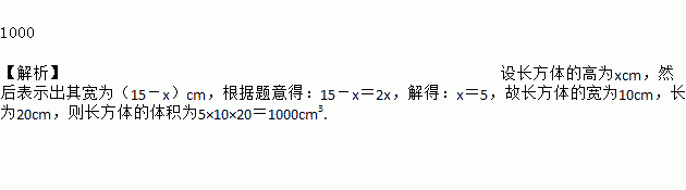 图1是边长为30 cm的正方形纸板,裁掉阴影后将其折叠成图2所示的长方体盒子,已知该长方体的宽是高的2倍,则它的体积是_____________cm3.