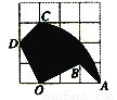 如图,在4×4的正方形网格中,每个小正方形的边长均为1,将△AOB绕点O逆时针旋转90°得到△COD,则旋转过程中形成的阴影部分的面积为________。