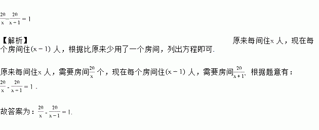 有20人外出旅游,因特殊原因,服务员在安排房间时每个房间比原来多住了1人,结果